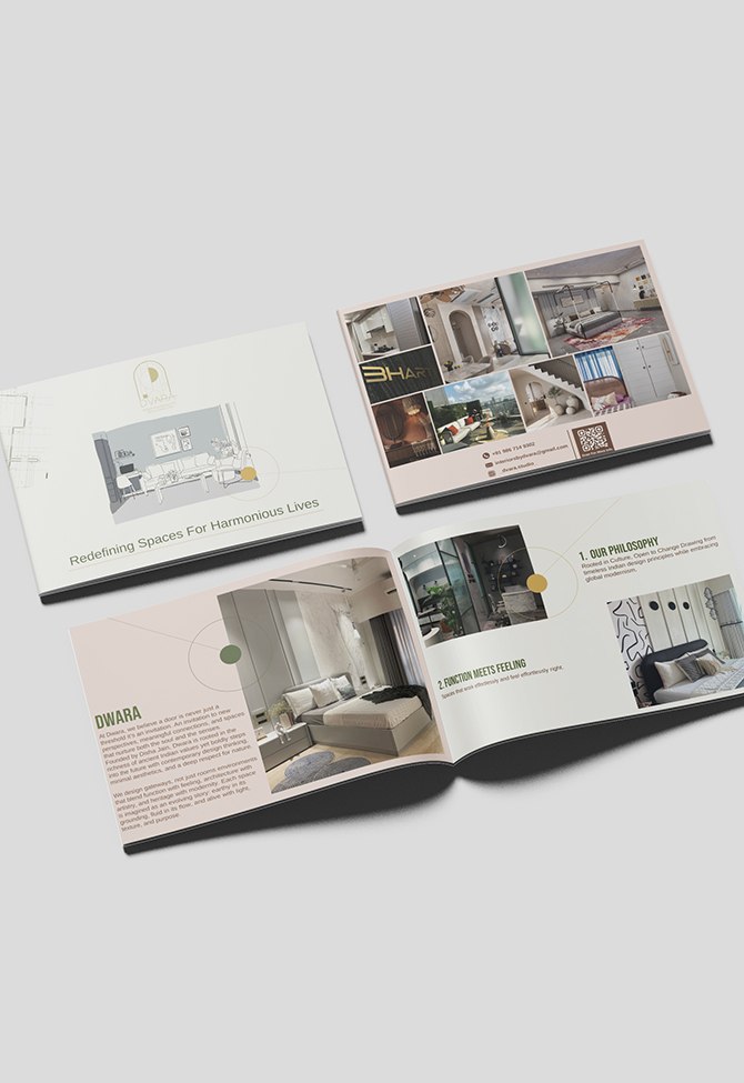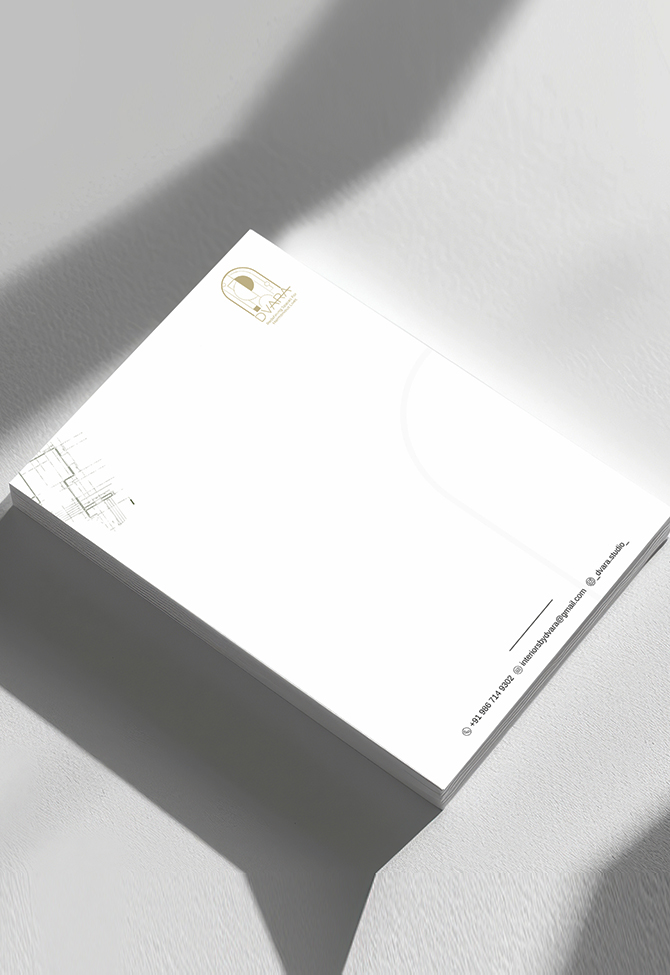We designed a timeless logo that captures the essence of threshold and transition — symbolic of entering spaces that inspire calm and creativity. Alongside, we built a comprehensive brand identity system, including brand guidelines, typography structure, stationery design, and brand profiling that now aligns every element with Dwara’s core philosophy.